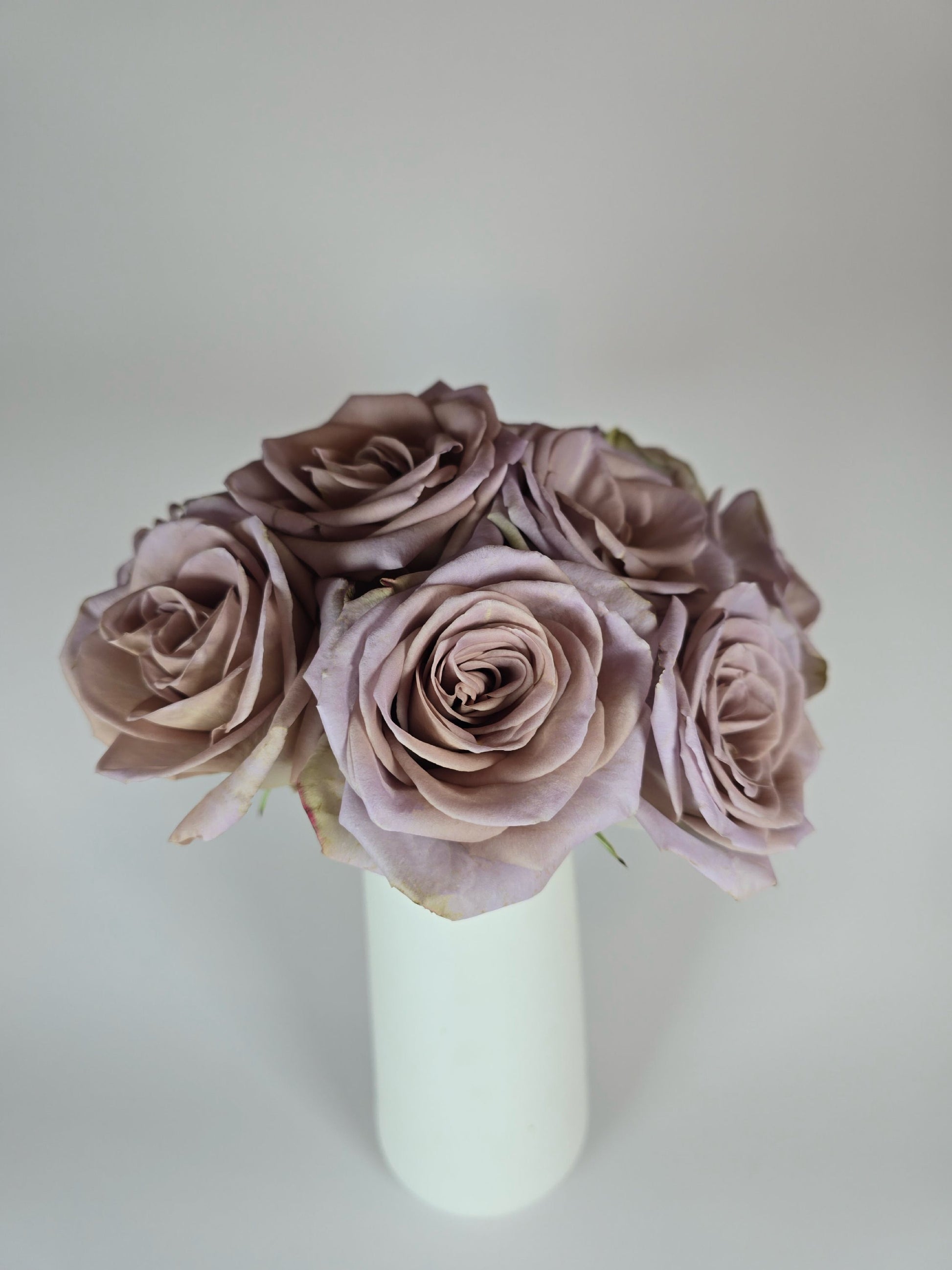 Lavender Amnesia roses are a truly enchanting variety, renowned for their striking color and unique beauty. The blooms feature soft lavender petals that gradually transition to a pale, muted pink at their core, creating a delicate, romantic look. What makes these roses particularly distinctive is their green-grey outer petals, which add a sophisticated, almost ethereal touch to the overall appearance. This unusual color contrast gives the flower an antique, vintage feel, making it a perfect choice for elegant gardens or special occasions. The large, ruffled blooms are both fragrant and long-lasting, with each petal unfolding to reveal a subtle, layered texture that only enhances their allure.