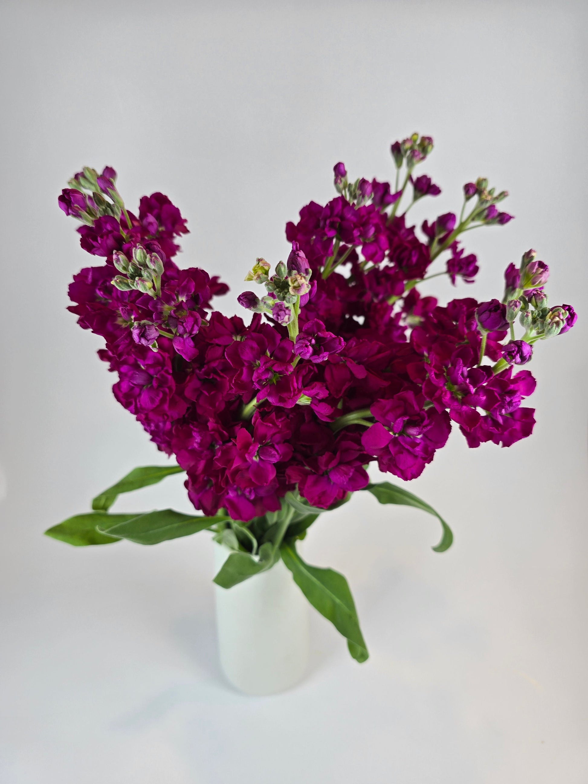 Our Hot Pink Stock Flowers are bold, vibrant blooms that bring energy, warmth, and excitement to any floral arrangement. With their tall, spiked clusters of bright, eye-catching pink flowers, Hot Pink Stock creates a striking visual impact and adds a playful, lively touch to bouquets and centerpieces. The vivid color symbolizes passion, joy, and admiration, making these flowers a perfect choice for celebrations, weddings, or events that call for a burst of vibrant energy. The full, rosette-like petals of Hot Pink Stock add both texture and volume to floral designs, and their rich, saturated hue pairs beautifully with other bright colors like orange, yellow, or purple, as well as softer pastels like blush or white. Whether used as a bold focal point or as a complementary accent, Hot Pink Stock enhances any composition with its lively color and sweet, clove-like fragrance.