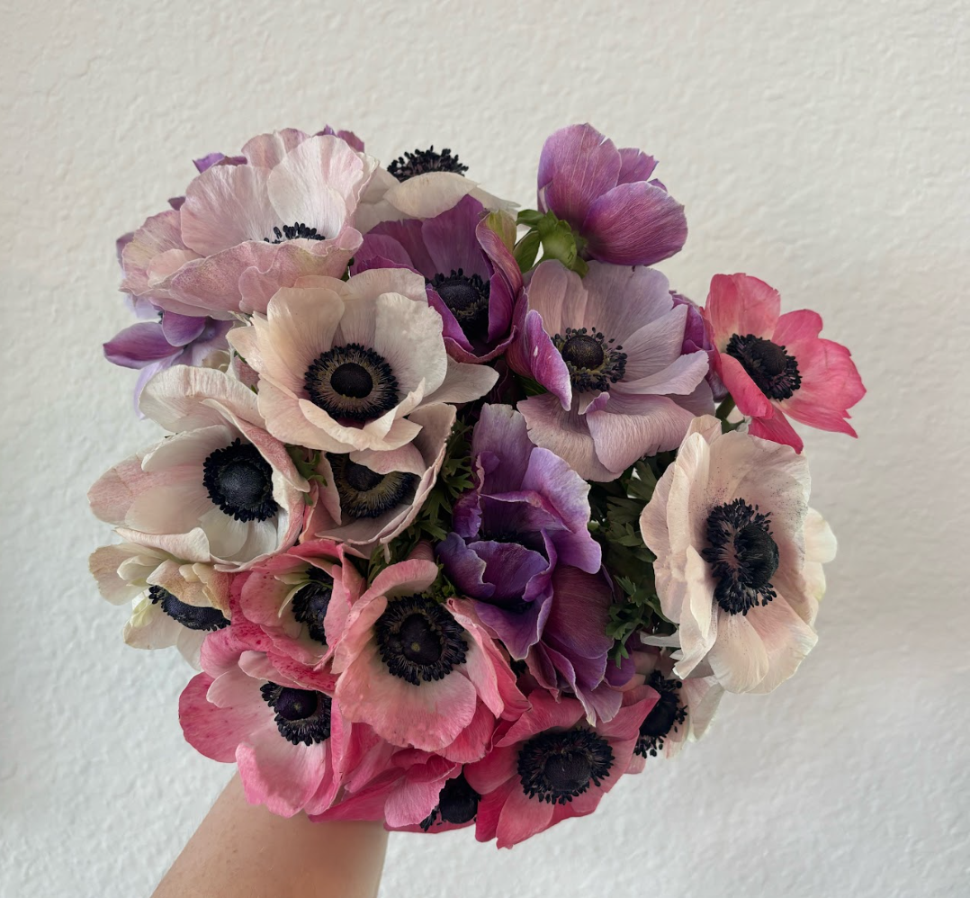 - This box includes 30 stems of Delphinium (you get to choose 1 color), 30 stems of Anemones (you get to choose 1 color), and 20 stems of Yellow Craspedia Billy Balls.