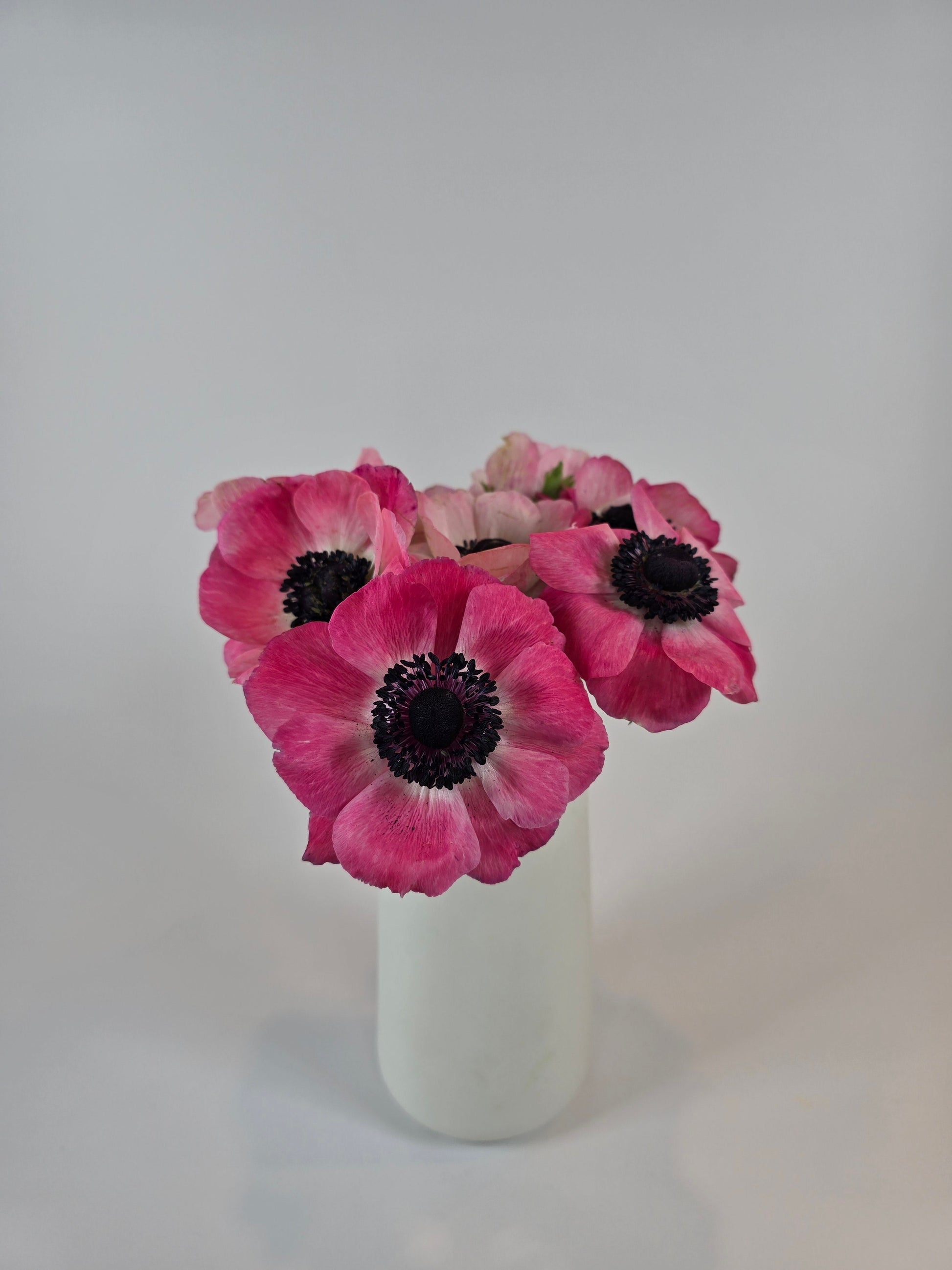 Our Pink Anemones are striking, delicate flowers that add a fresh and elegant touch to any floral arrangement. With their soft, pastel pink petals, these blooms offer a gentle, romantic appeal. The centers of Pink Anemones can range from dark, inky black to a lighter shade of purple or even soft yellow, creating a beautiful contrast that highlights the softness of the petals and adds depth to the overall flower. This variation in center color gives Pink Anemones a dynamic quality, allowing them to complement a wide range of color palettes. With their gentle pink hues and contrasting centers, Pink Anemones bring a touch of romance and sophistication to any floral arrangement, making them a beloved choice for creating unforgettable, elegant displays.