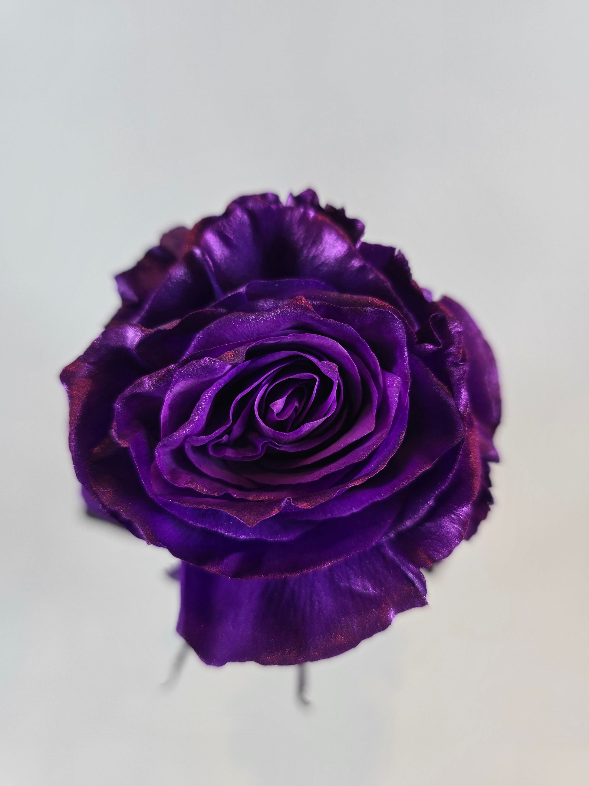 Our Metallic Tinted Purple Roses are a luxurious fusion of bold color and dazzling sheen, offering a truly unique and sophisticated twist on the classic rose. The rich, deep purple petals are enhanced with a striking metallic finish, giving them an iridescent glow that catches the light from every angle. This beautiful metallic tint adds an element of glamour and mystery, making these roses the perfect choice for those looking to make a memorable statement. Whether used as a striking focal flower or a luxurious accent, these roses bring a contemporary, high-fashion touch to any bouquet or centerpiece.