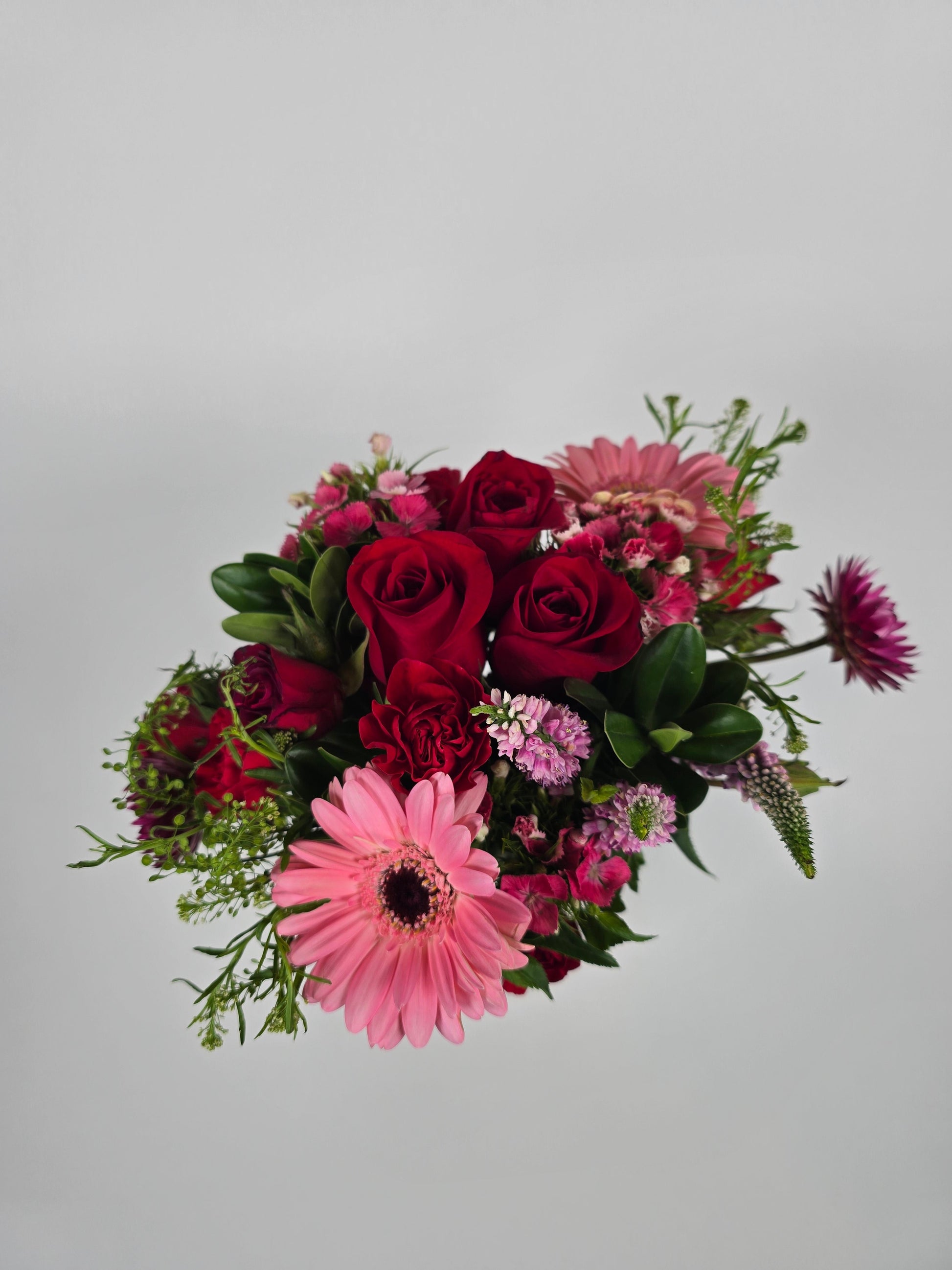 Our Rosy Scarlett Mini Bouquets are the perfect touch of elegance and charm for any space. Each bouquet is thoughtfully crafted with 18 vibrant stems, showcasing a rich blend of soft rosies and deep scarlet hues that create a striking contrast. Designed for both beauty and convenience, every mini bouquet comes with its own chic vase, ensuring you have everything needed to display this stunning arrangement right out of the box. Whether it's brightening up your desk, adding warmth to your home, or serving as a thoughtful gift, the Rosy Scarlett Mini Bouquet is a delightful way to bring nature’s beauty indoors.
