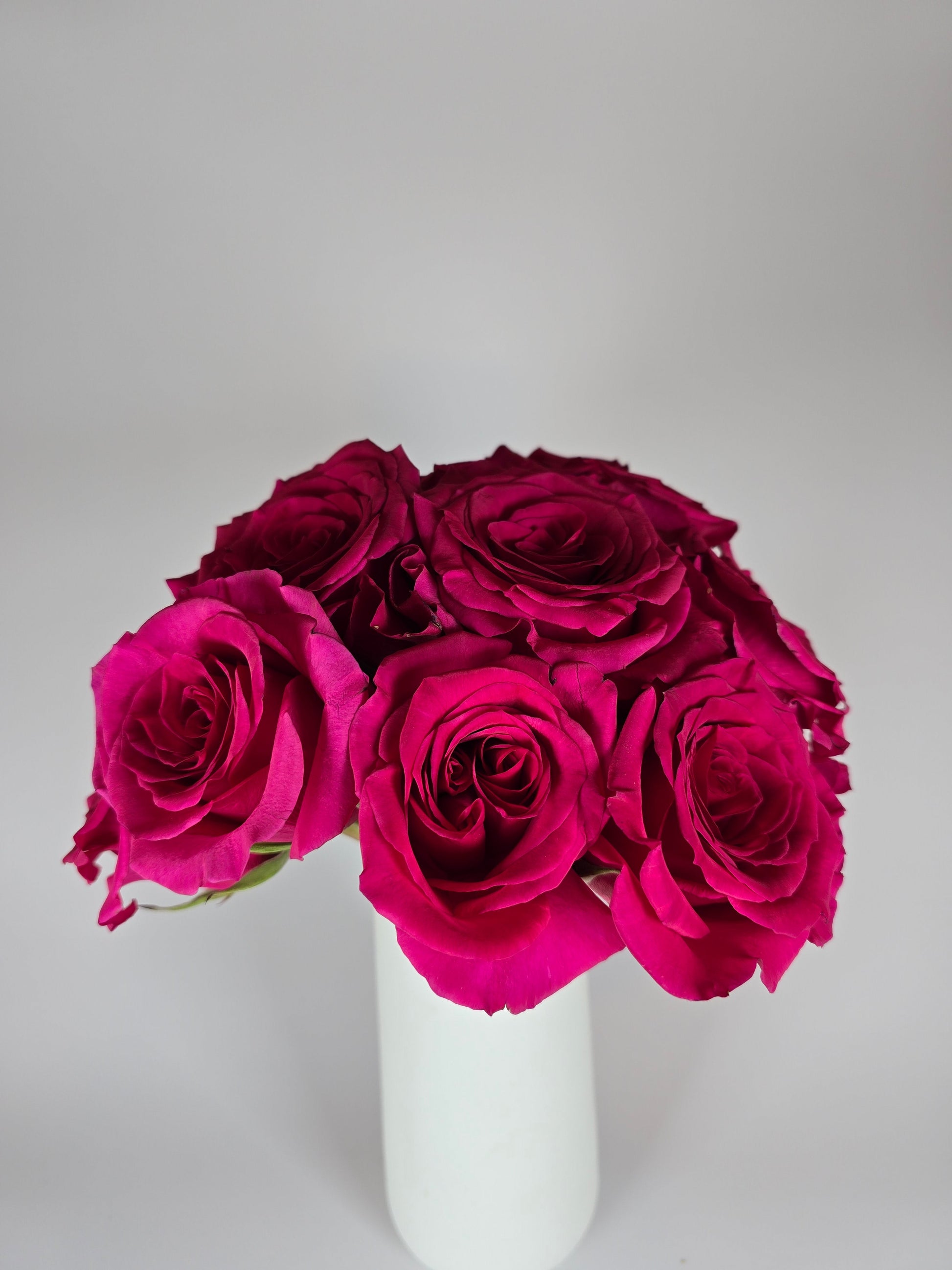 Vibrant, bold, and utterly captivating, Hot Pink Queenberry Roses are a true showstopper. Their intense, rich pink hue is electric, radiating a lively energy and passion that makes them impossible to ignore. With large, full blooms and perfectly layered petals, these roses exude a sense of luxury and opulence. Their stunning color deepens at the center and gradually softens toward the edges, creating a striking contrast that catches the light with every angle.