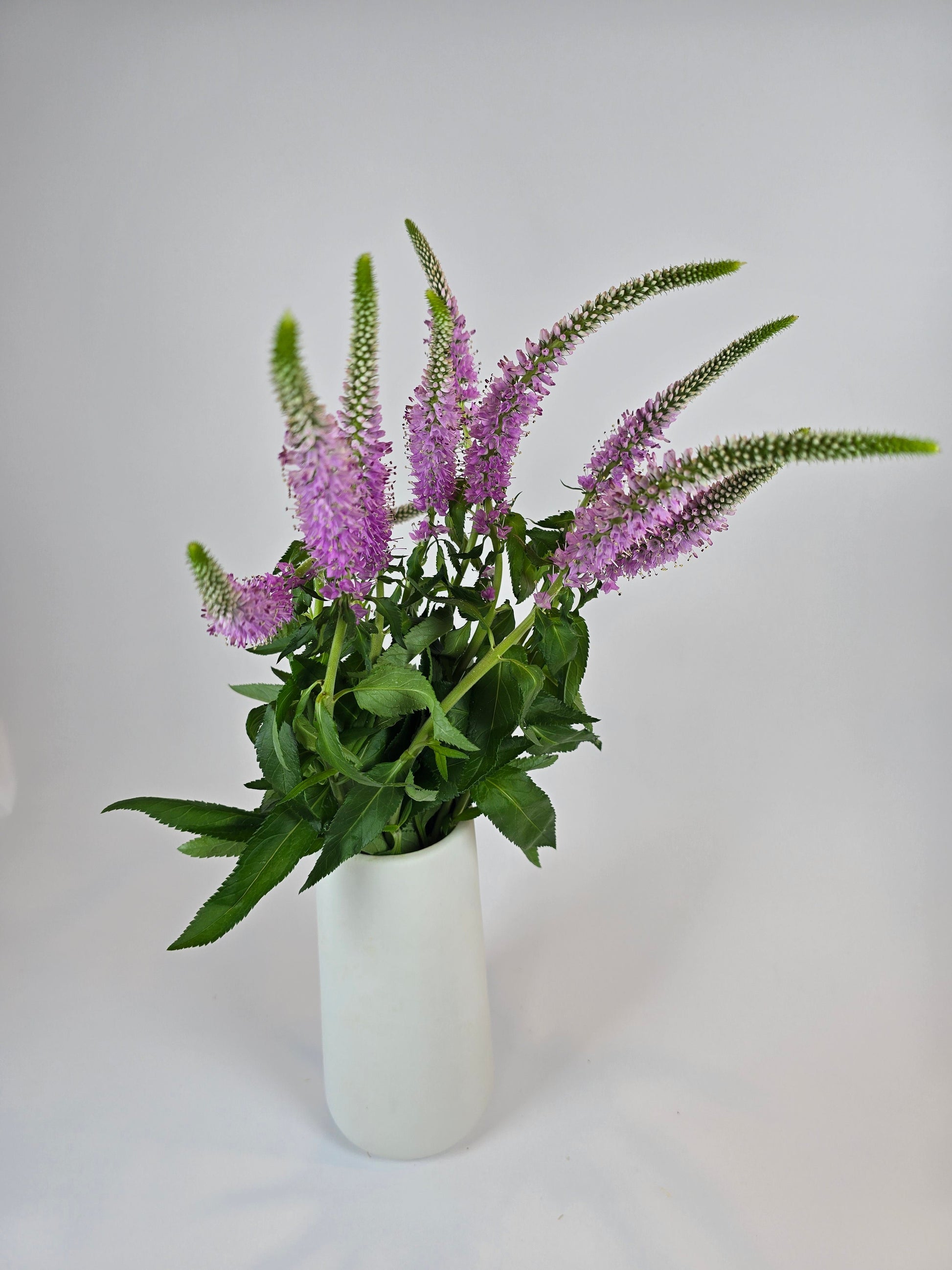 Our Pink Veronicas are elegant and captivating blooms that bring a touch of grace and charm to any floral arrangement. With their tall, spiky stems lined with clusters of soft pink flowers, these delicate blossoms add both height and texture to bouquets and centerpieces. The gentle pink hue exudes warmth, femininity, and serenity, making them perfect for romantic occasions, weddings, or any event that calls for a refined, sophisticated touch. Long-lasting and versatile, Pink Veronicas are perfect for those seeking to elevate their arrangements with a timeless and elegant flower. Whether used as a statement flower or a complementary accent, these blooms bring both beauty and poise to any bouquet.
