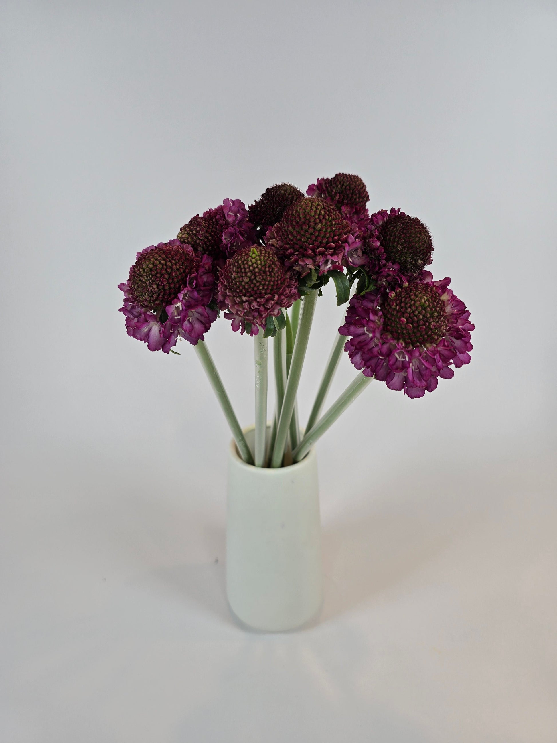 Our Raspberry Scabiosas are a vibrant and captivating flower that adds a bold splash of color and texture to any floral arrangement. With their rich, raspberry-red petals and delicate, lace-like edges, these blooms create a striking contrast that’s both playful and sophisticated. The central button-like structure and feathery, frilled petals give them a unique, almost whimsical charm, making them a standout choice for any event or celebration. With their one-of-a-kind color and intricate texture, Raspberry Scabiosas bring both depth and elegance to any bouquet or centerpiece. Whether used as a focal flower or as part of a mixed arrangement, these blooms add a layer of sophistication and playfulness that will leave a lasting impression on any event.