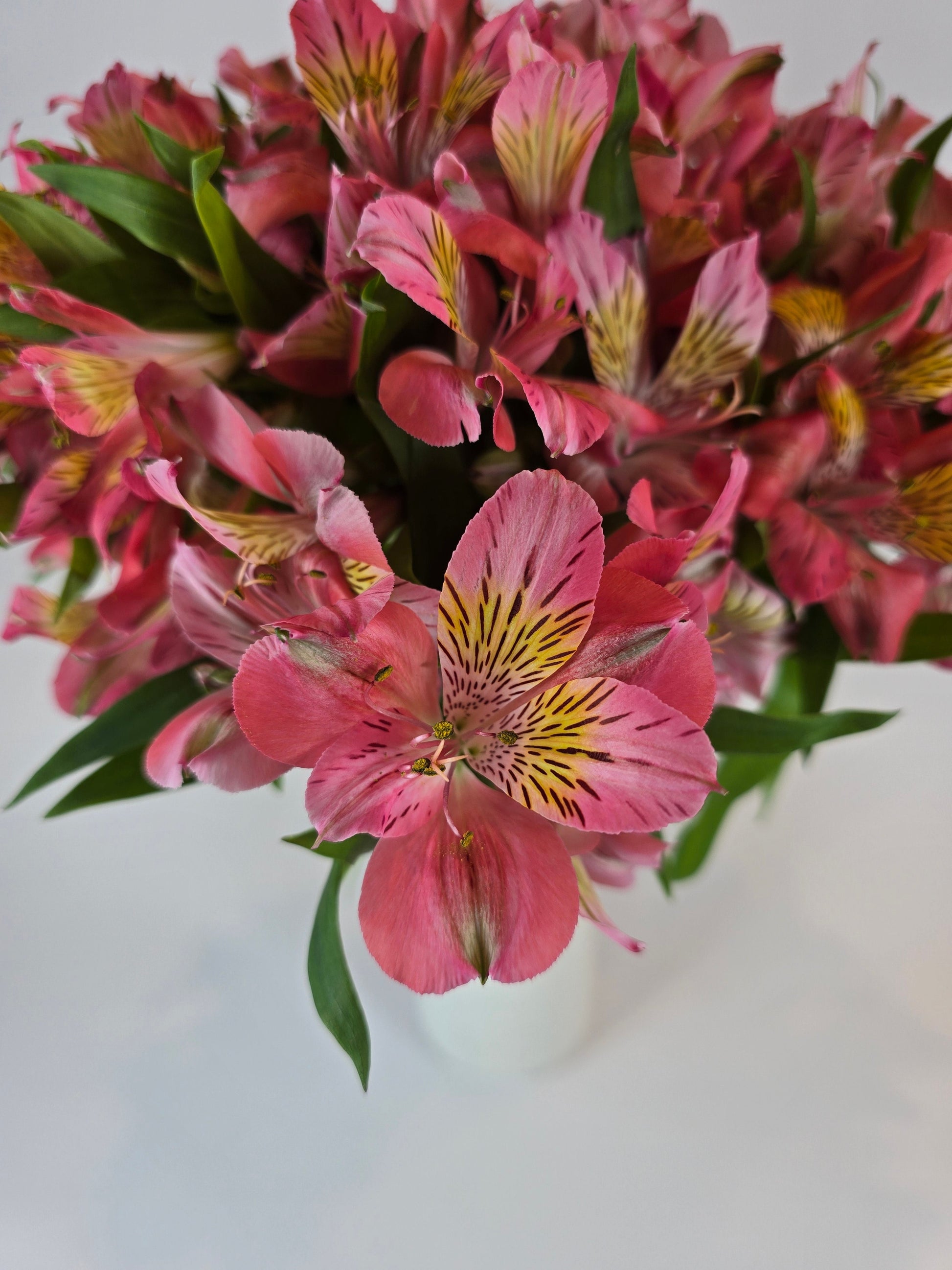 Our Pink Alstroemerias are soft, graceful blooms that bring a touch of gentle elegance and charm to any floral arrangement. With their delicate pink petals and subtle, dark streaks in the center, these flowers exude a sense of warmth, affection, and serenity. Their unique, trumpet-like shape and intricate details make them a standout choice for adding depth and texture to bouquets and centerpieces. With their long-lasting beauty and subtle sophistication, Pink Alstroemerias bring a refreshing and timeless touch to any floral composition. Whether used as a focal flower or in a mixed bouquet, these flowers infuse a sense of elegance and joy into any special occasion or event.