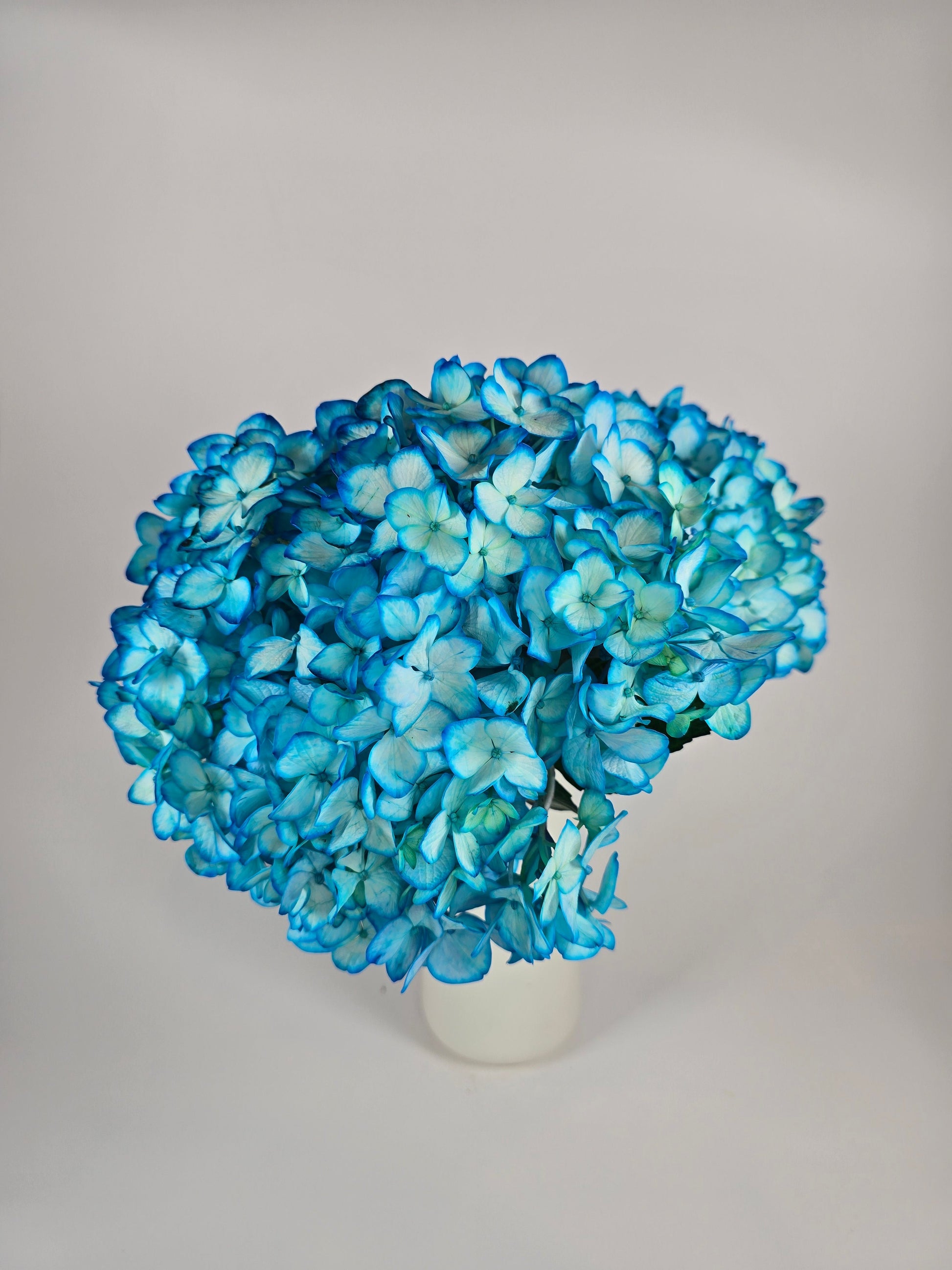 Turquoise-Tinted Hydrangeas are a striking and vibrant floral statement that combines the calming beauty of turquoise with the lush, rounded petals of the classic hydrangea. Dyed through a meticulous intravenous process, these hydrangeas are infused with rich turquoise hues that range from soft, seafoam-like shades to deeper, jewel-toned blues and greens, creating an enchanting gradient effect. The result is a stunning, multi-dimensional bloom that adds a pop of color, sophistication, and uniqueness to any arrangement. These hydrangeas pair beautifully with other cool-toned blooms, such as white lilies, soft blues, or pale greens, creating a serene and cohesive color palette. Alternatively, they can be used to add a striking contrast to warm-toned flowers like coral, peach, or gold, creating a dynamic and visually captivating display. Whether used for weddings, upscale events, or as a statement piece in home decor, these turquoise-tinted hydrangeas bring a sophisticated yet playful touch to any occasion