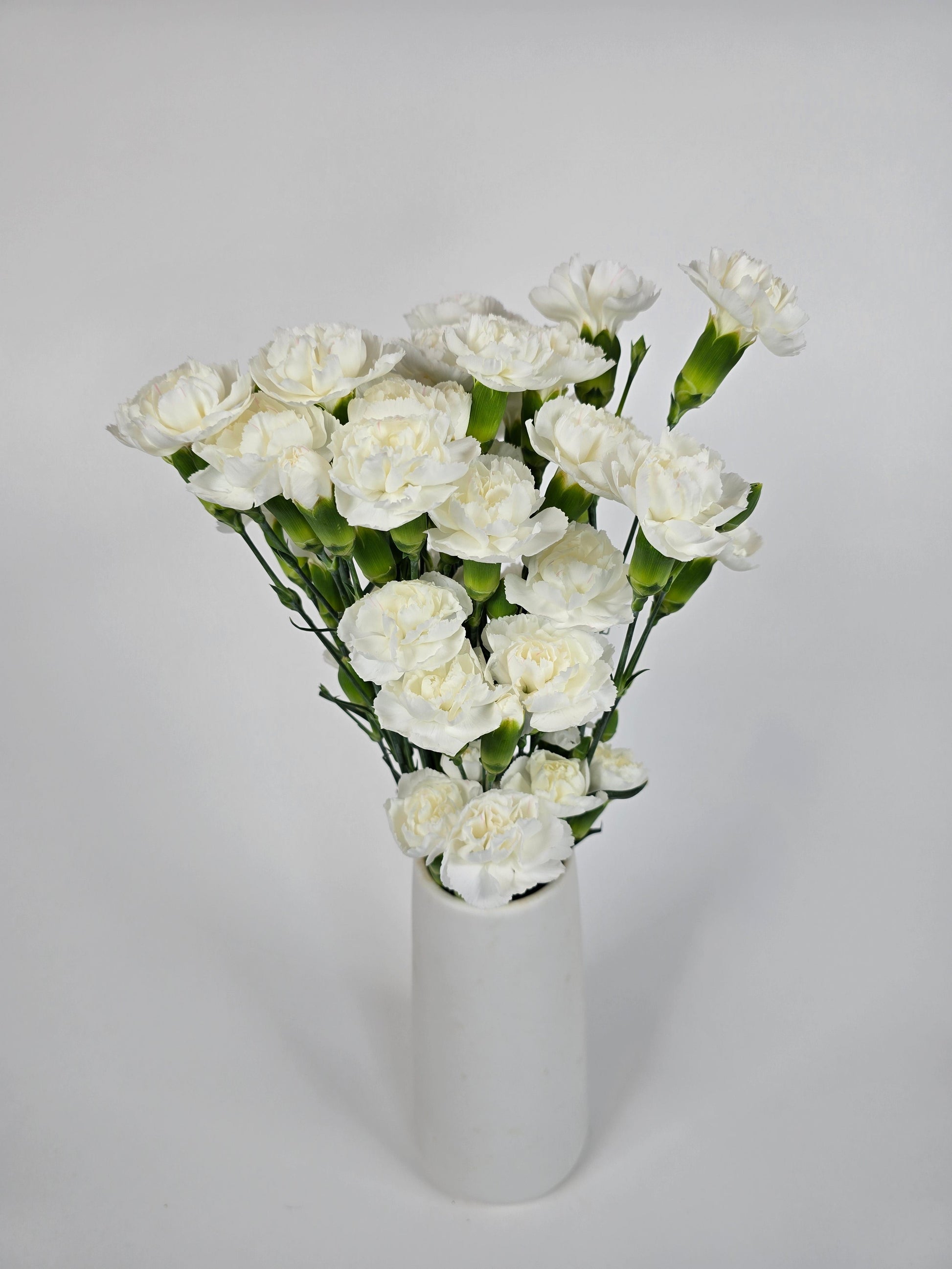 Clean, classic, and effortlessly elegant — our white spray carnations are the perfect floral accent for any occasion. Each stem features multiple delicate blooms with ruffled white petals, ideal for creating soft textures and adding fullness to bouquets, centerpieces, and floral installations. A favorite among DIY brides, event planners, and floral designers, white spray carnations offer timeless beauty and exceptional versatility. Whether you're planning a wedding, baby shower, or simply looking to brighten your home with fresh flowers, these blooms fit any theme or color palette. Create timeless floral moments with White Spray Carnations from The Flower Hype — fresh, full, and always beautiful.