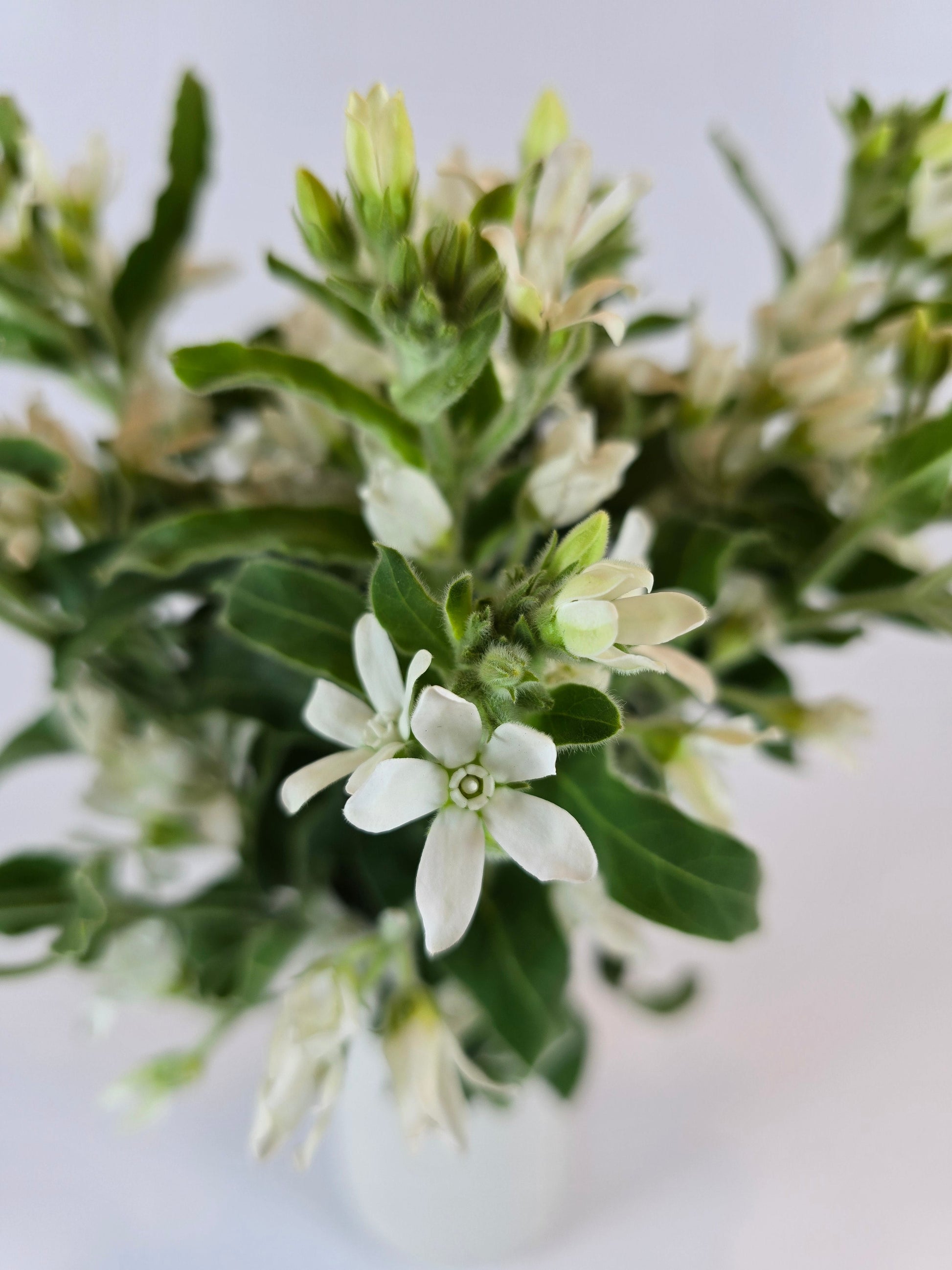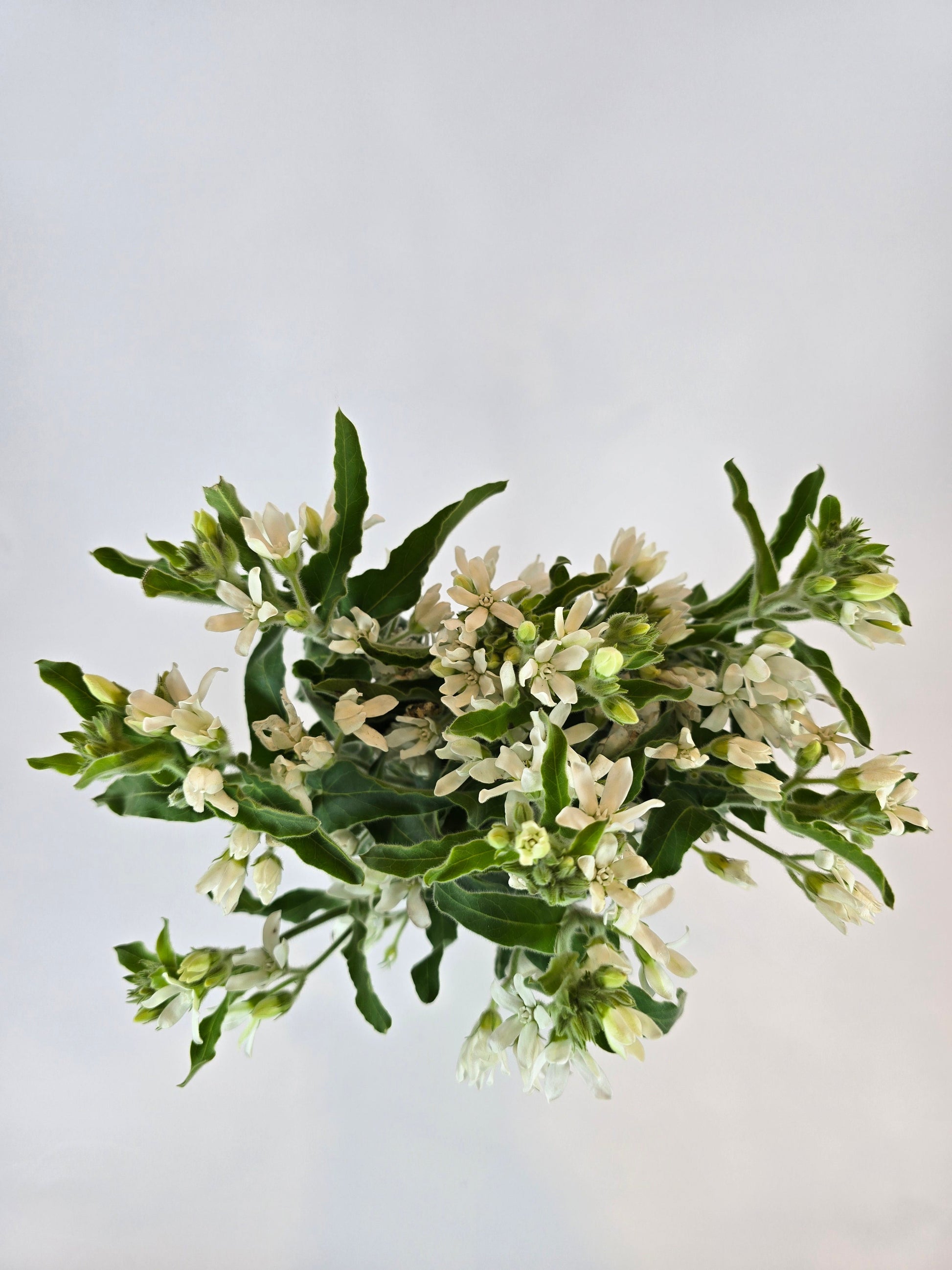 Looking for a flower that’s all class and zero drama? White Tweedia has you covered. Its gentle, airy appearance adds a serene, almost zen-like vibe to any bouquet, like the flower version of deep breaths and calm vibes. It’s the perfect companion for your other showy blooms—while they’re all Look at me! Tweedia is like, “Yeah, I got this, but I’ll let you shine.” White Tweedia is a graceful and elegant flower that adds a touch of serenity and sophistication to any floral arrangement. With its delicate, star-shaped white blooms and slender, wispy stems, Tweedia has an ethereal, almost cloud-like appearance. The soft white petals create a pure, understated beauty, making it a perfect choice for both modern and vintage-inspired designs.